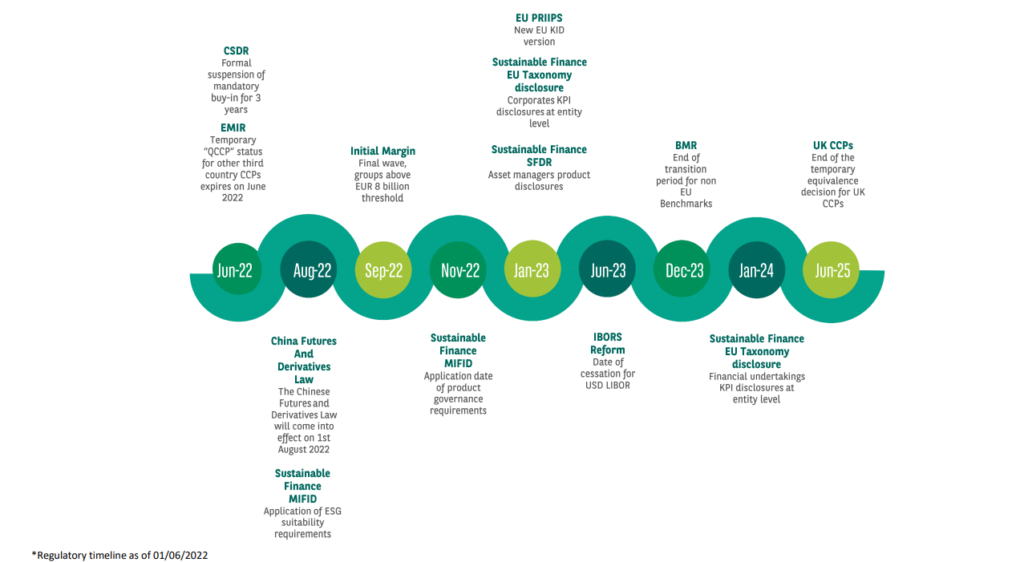 To prevent further financial crises, regulators worldwide have strengthened rules to minimise risky financial activities, reduce counterparty risk, protect investors and provide further transparency through a series of regulations (e.g. Dodd-Frank Act, EMIR, MIFID II, CSDR etc.). Educational materials on these regulations are accessible through our dedicated sales force.